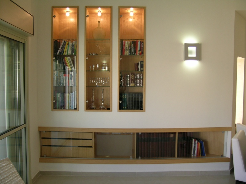 כולל דלתות הזזה מזכוכית, מדפים ומגירות.