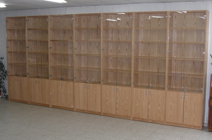 שילוב דלתות זכוכית ודלתות מאלון אדום.
